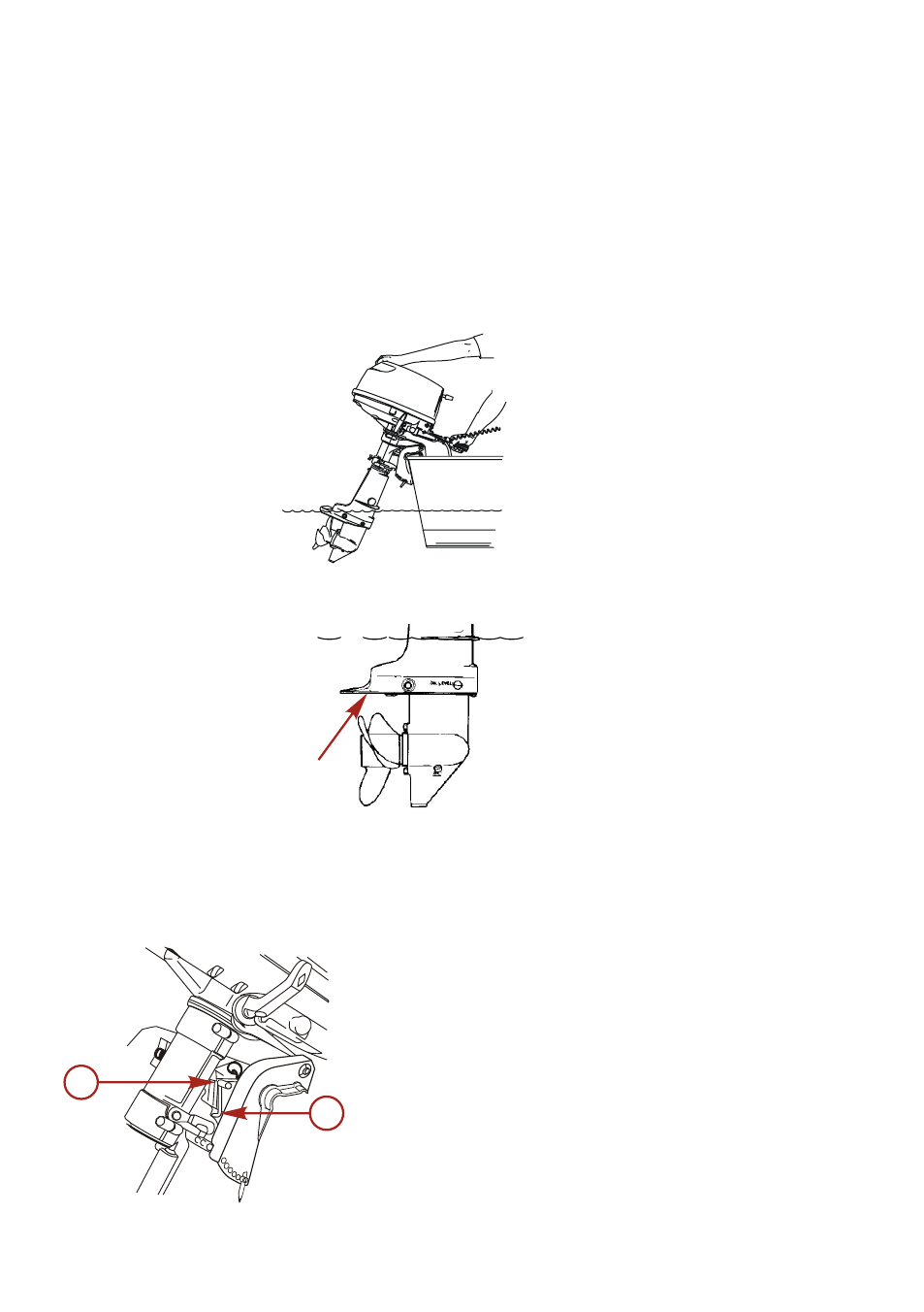 Если двигатель остановлен на некоторое время или если лодка пришвартована на отмели, мотор должен быть поднят, чтобы защитить винт и окружающие его части от повреждения столкновением с преградами