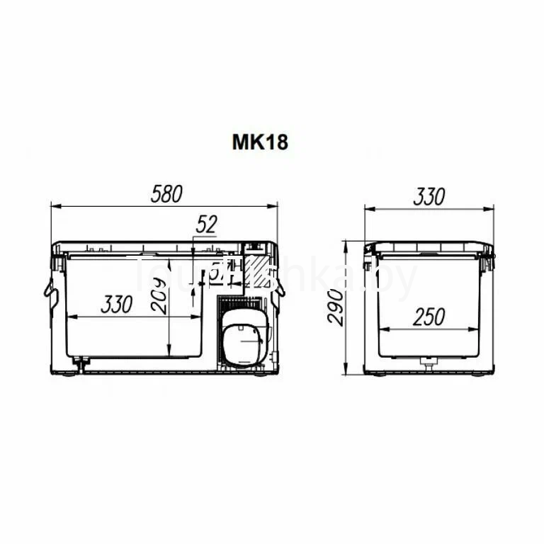 Крышка МК-18 – откидная. По бокам модели имеются удобные ручки, облегчающие процесс переноски. При открытии крышки автохолодильника происходит автоматическое включение светодиодной лампы, которая прекрасно освещает обе камеры.