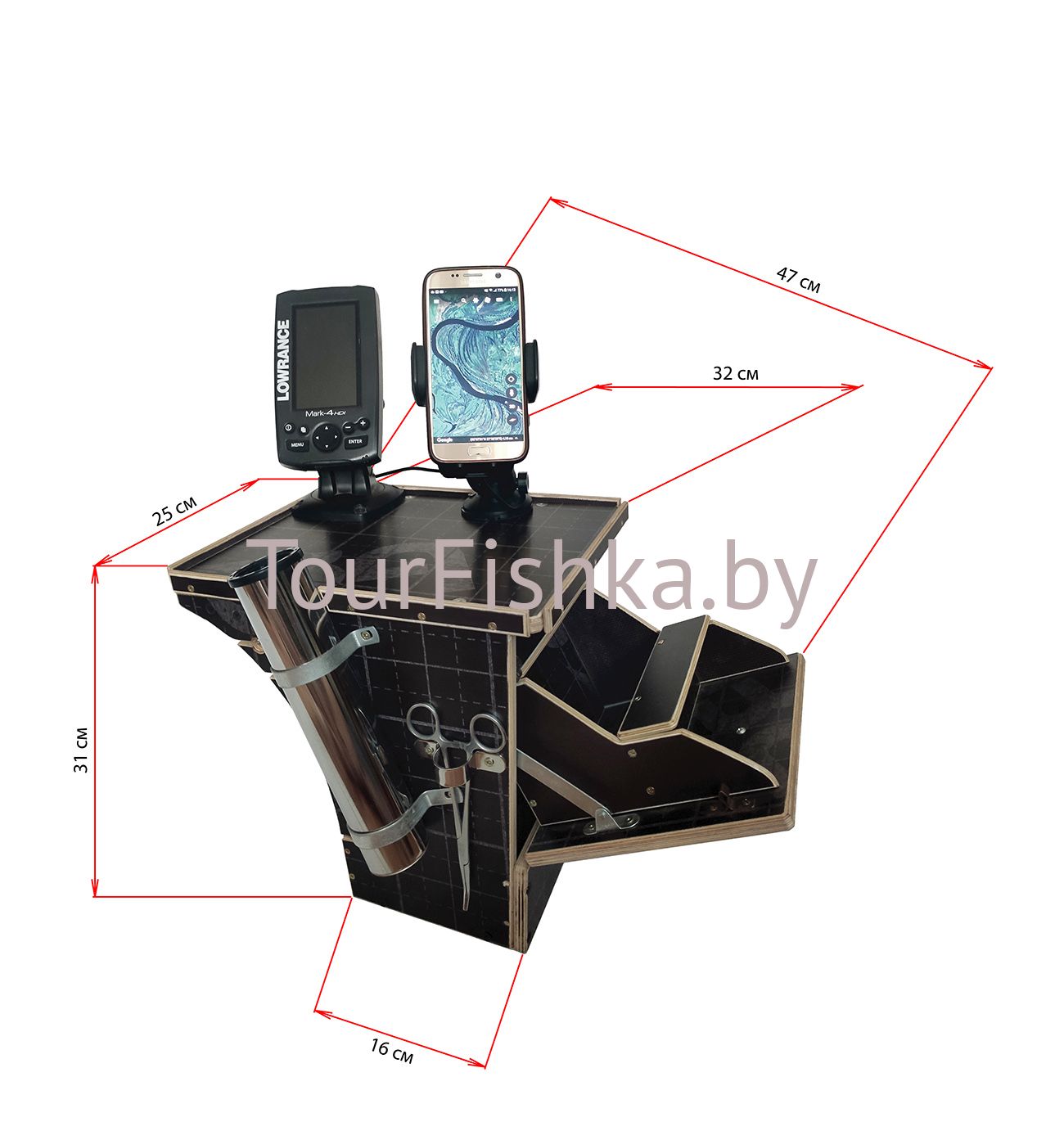 Столик в лодку ПВХ – многофункциональный, выполнен из водостойкой фанеры, предназначен для установки различных приборов, необходимых для рыбалки, хранения припасов, оборудования и других рыболовных целей (эхолота, приманок, термоса, стаканчиков, провианта и т.д) Быстро монтируется на ликтрос борта надувной лодки, в удобном для Вас месте, без использования дополнительного крепежа.Имеет прорези для крепления под 35-42 баллоны. Столик может иметь дополнительные элементы конструкции.