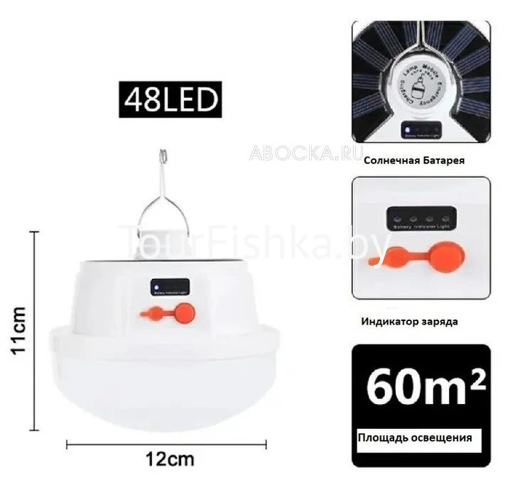 Кемпинговый фонарь подвесной на солнечной батарее может применяться для альпинизма, рыбалки, путешествий, семейных автомобильных кемпингов, а также для бытового применения в качестве резервного источника света. Работает от встроенной батареи. Имеется удобный крючок для подвешивания. Лампа имеет индикатор батареи.