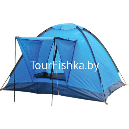 Вход в палатку двойной. Внешний слой из полиэстера обеспечивает защиту от ветра и влаги, а внутренний слой из москитной сетки позволяет регулировать воздухообмен и температуру внутри палатки и, что немаловажно, защищает от насекомых. Оба слоя входа закрываются на молнию. Внешний слой может при необходимость трансформироваться в козырек над входом.