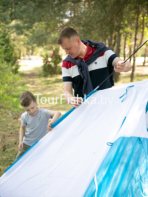 Палатка легко устанавливается и обладает хорошей устойчивостью к ветру.