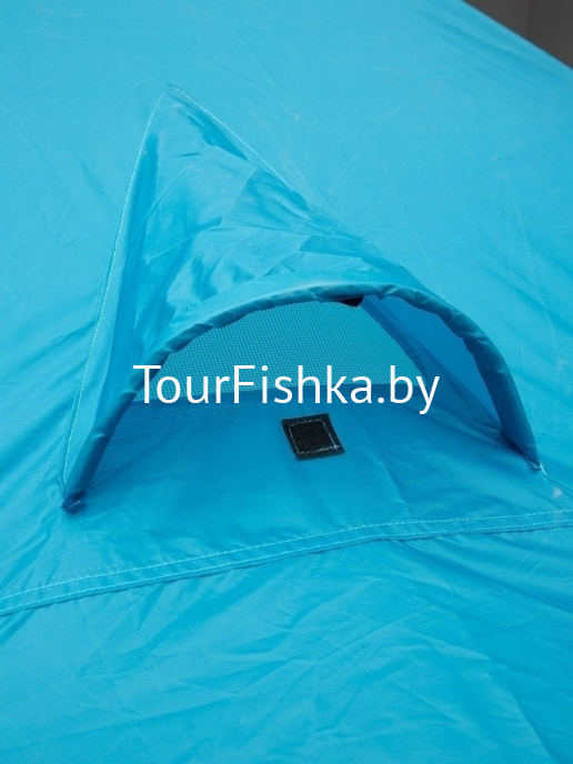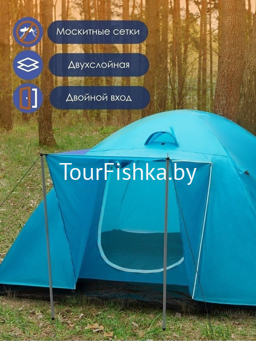 Вход в палатку двойной. Внешний слой из полиэстера обеспечивает защиту от ветра и влаги, а внутренний слой из москитной сетки позволяет регулировать воздухообмен и температуру внутри палатки и, что немаловажно, защищает от насекомых. Оба слоя входа закрываются на молнию. Внешний слой может при необходимость трансформироваться в козырек над входом.