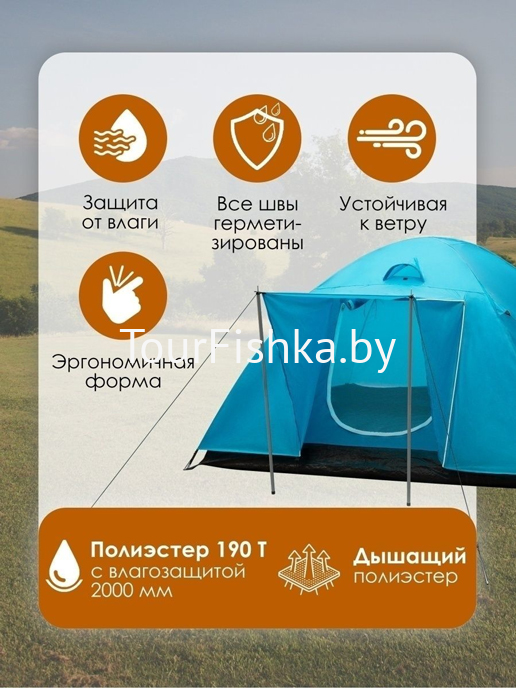 Главным преимуществом представленной модели палатки является наличие двух слоев. Внешний слой обеспечивает защиту от проникновения влаги, а внутренний слой препятствует скоплению конденсата, благодаря чему спать в такой палатке комфортно в любую погоду. Хороший показатель водостойкости позволяет оставаться палатке внутри сухой даже при сильном дожде.