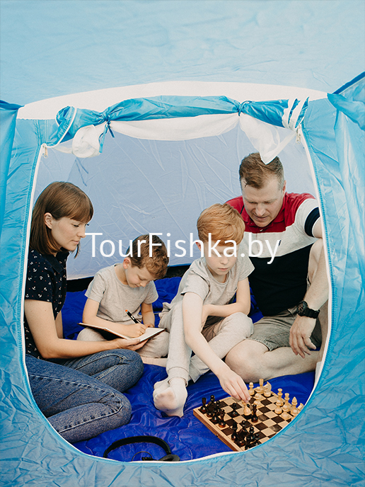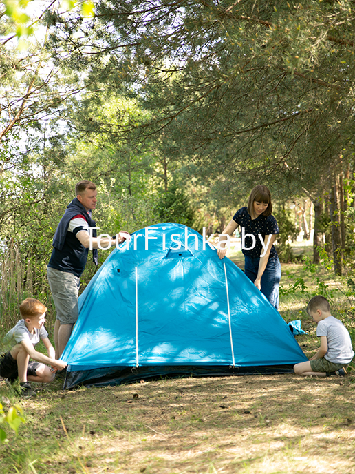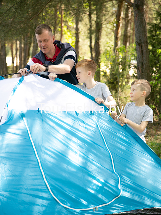Палатка легко устанавливается и обладает хорошей устойчивостью к ветру.