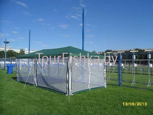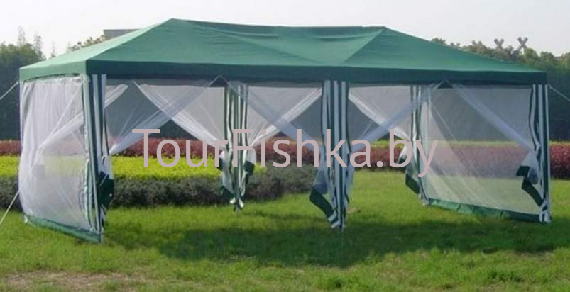 Габариты, которыми обладает шатер следующие: длина - 6 метров, ширина – 3 метра, уровень высоты составляет 2,5 метра. Общая площадь, которую покрывает этот шатер, равна 18-ти квадратным метрам.