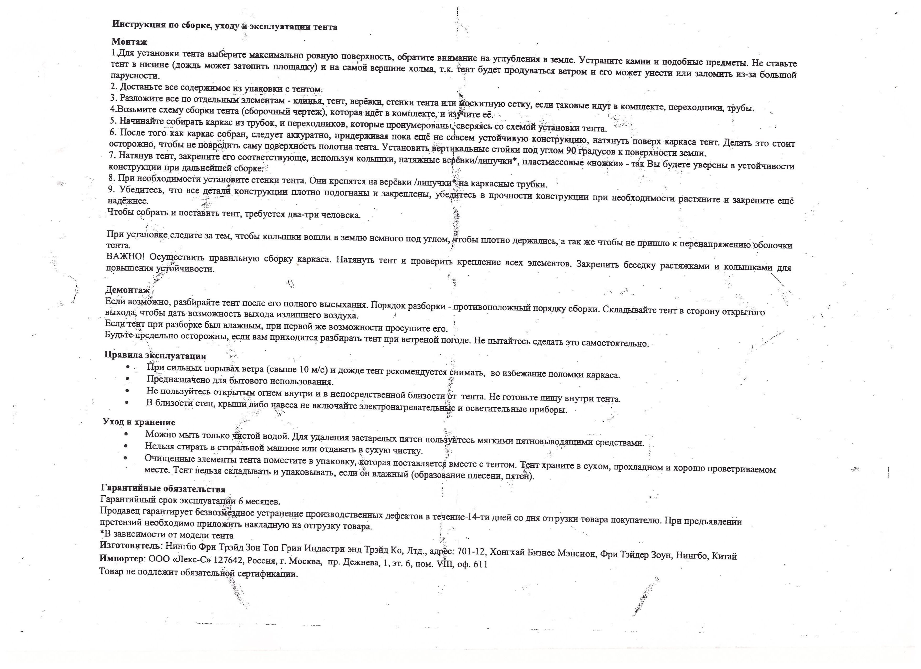 Назначение: Для защиты от солнца и моросящего дождя. Не использовать при сильном ветре.