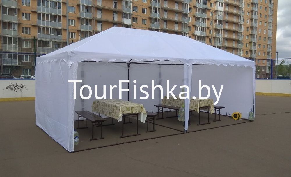 Прокат шатра 6×3 м белого цвета — для торговли, свадьбы, ярмарки, рыбалки и пикника