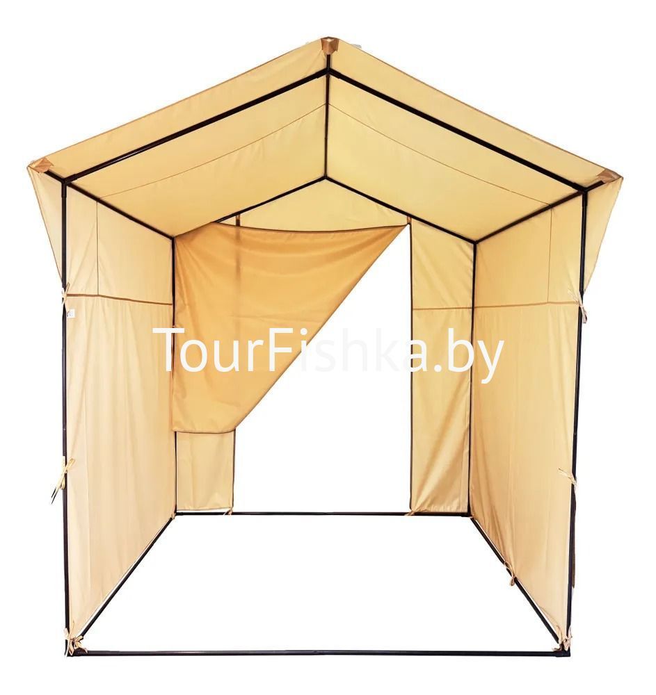 На задней части тента имеется вход на 2 молниях. Крепление тента к каркасу осуществляется с помощью завязок.