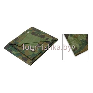 Тент водостойкий защитный для укрытия людей, автомобилей, дров, механизмов от воздействия окружающей среды ― дождя, солнца, ветра. По краю пропущен усиливающий капроновый шпагат и установлены металлические кольца-люверсы.
